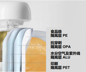 嬰尚果泥采用四層鎖鮮包裝(食品級(jí)隔離層 PE、抗穿刺隔離層 OPA、水分空氣及紫外線隔離層ALU以及印刷隔離層 PET),杜絕了氧氣和細(xì)菌,同時(shí)采用巴氏殺菌工藝,不添加防腐劑也能保鮮,最大程度保留了原材料的營養(yǎng)。
